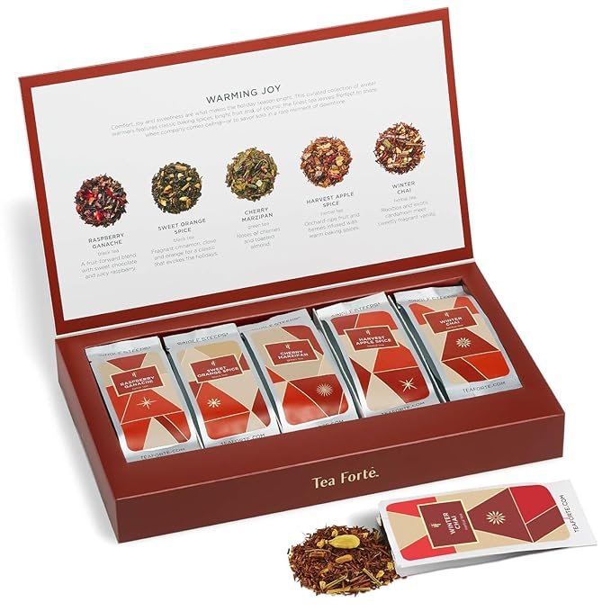 The Tea Forte Warming Joy Holiday Tea Set is a delightful collection of premium loose-leaf teas, perfect for creating cozy and calming moments. This beautifully packaged set includes 20 pyramid tea infusers with seasonal blends like Spiced Ginger Plum and Rum Raisin Biscotti. It’s an elegant way to unwind, making it ideal for mindfulness practices or as a treat during quiet winter evenings.